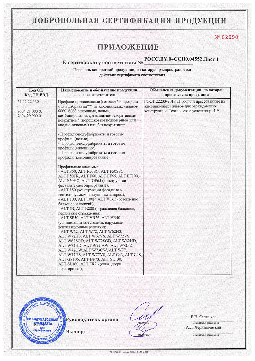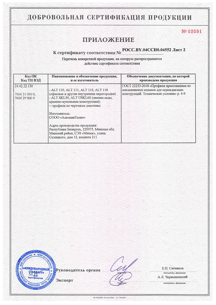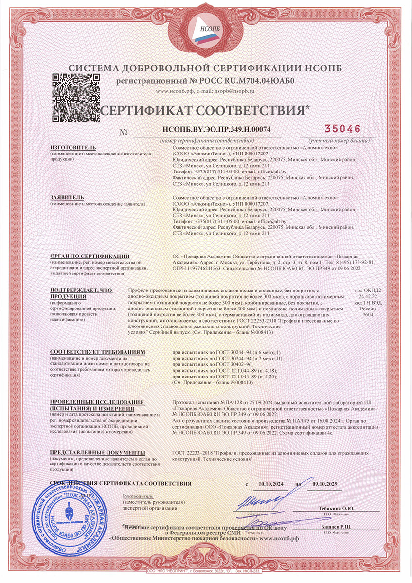 Сертификат о соответствии Alutech