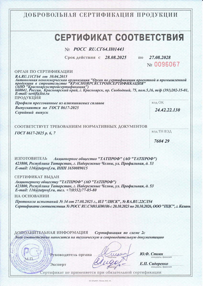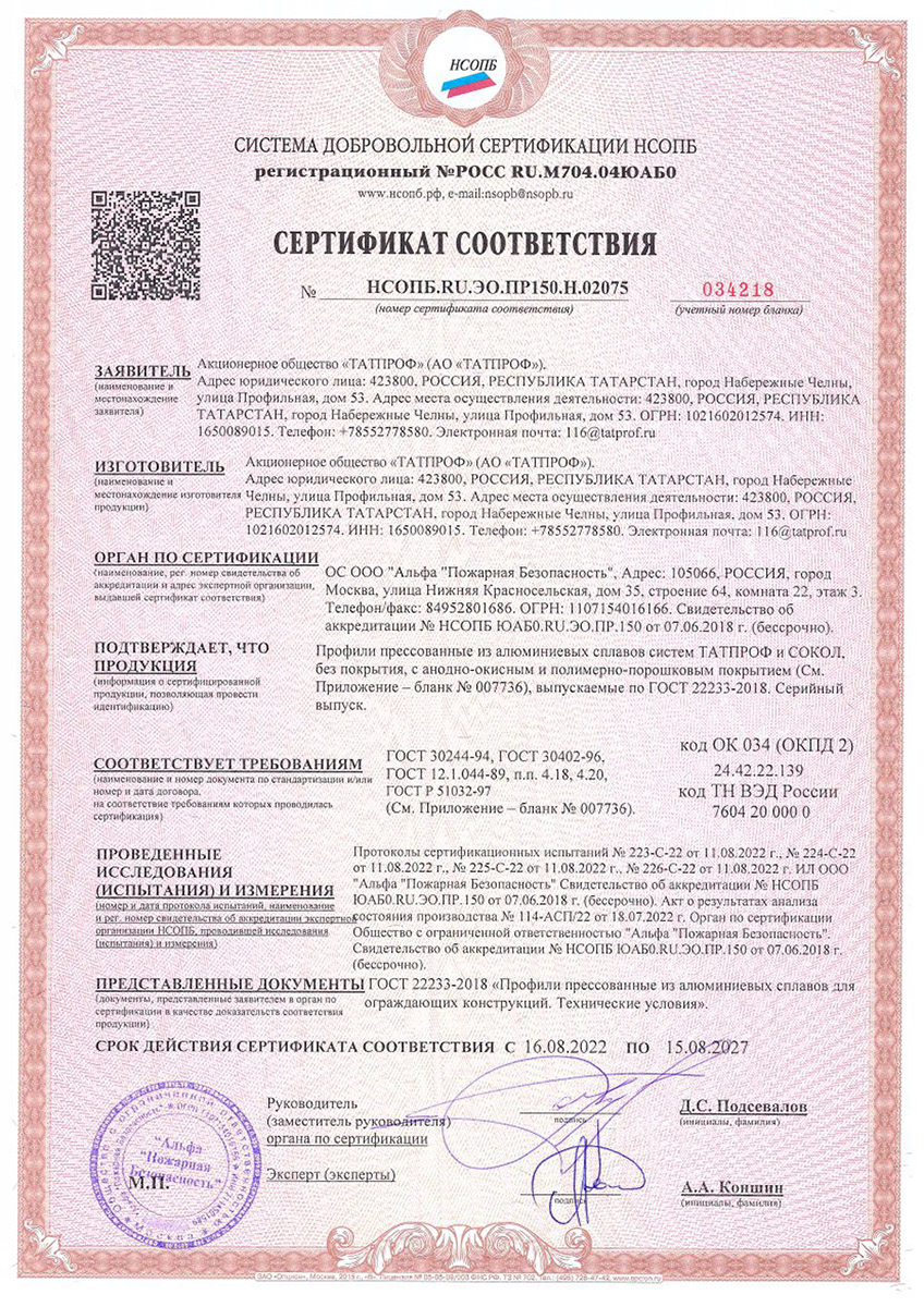 Сертификаты о соответствии Татпроф